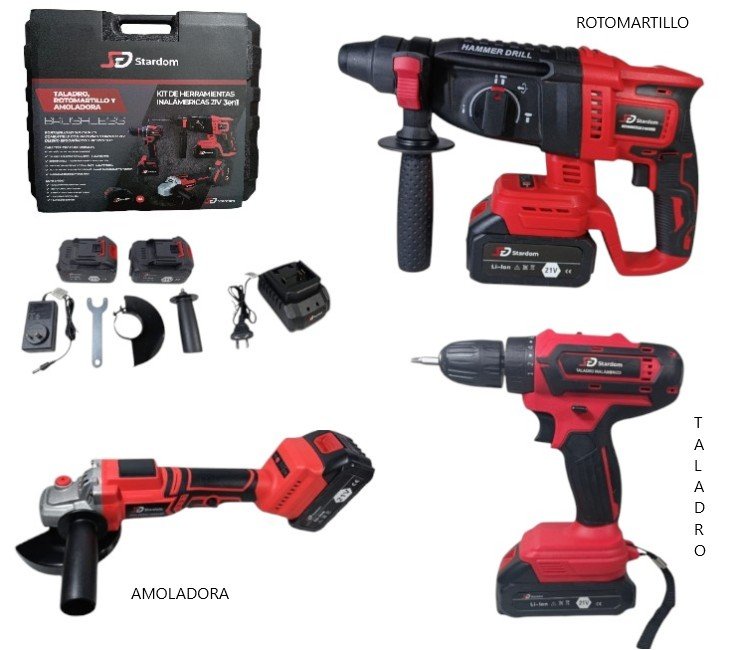 KIT DE HERRAMIENTAS INALAMBRICAS RECARGABLES 21V 3EN1